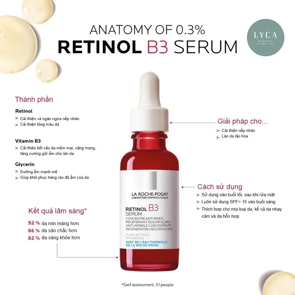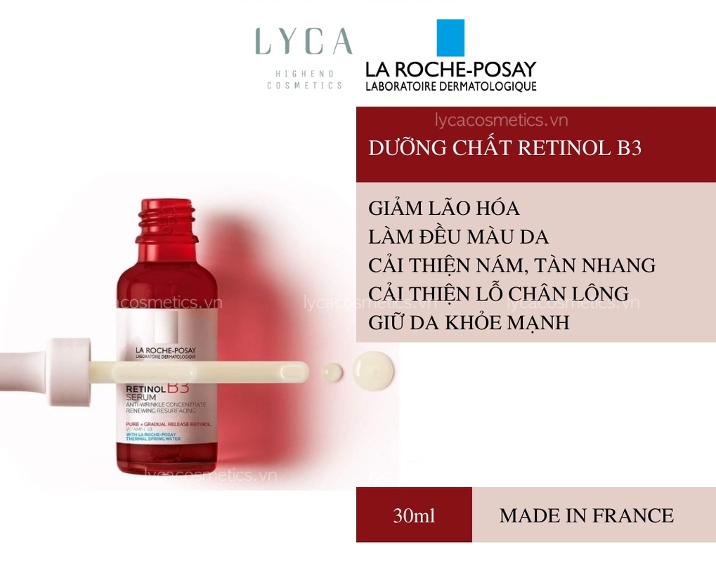 Là dòng serum chống lão hóa da mặt mạnh mẽ, La Roche Posay Retinol B3 chứa retinol tinh khiết và vitamin B3 để mang lại làn da mịn màng, ngậm nước và trẻ trung hơn rõ rệt. Chỉ với 0,3% Retinol cực kỳ an toàn, lành tính phù hợp cho những nàng mới bắt đầu làm quen, mà không cần lo lắng da sẽ gặp phải tình trạng kích ứng nặng nề, bong tróc hay khô da. Hiệu quả cho việc giảm sự xuất hiện của các nếp nhăn và các dấu hiệu của tổn thương sớm do ánh nắng mặt trời và sự đổi màu da.