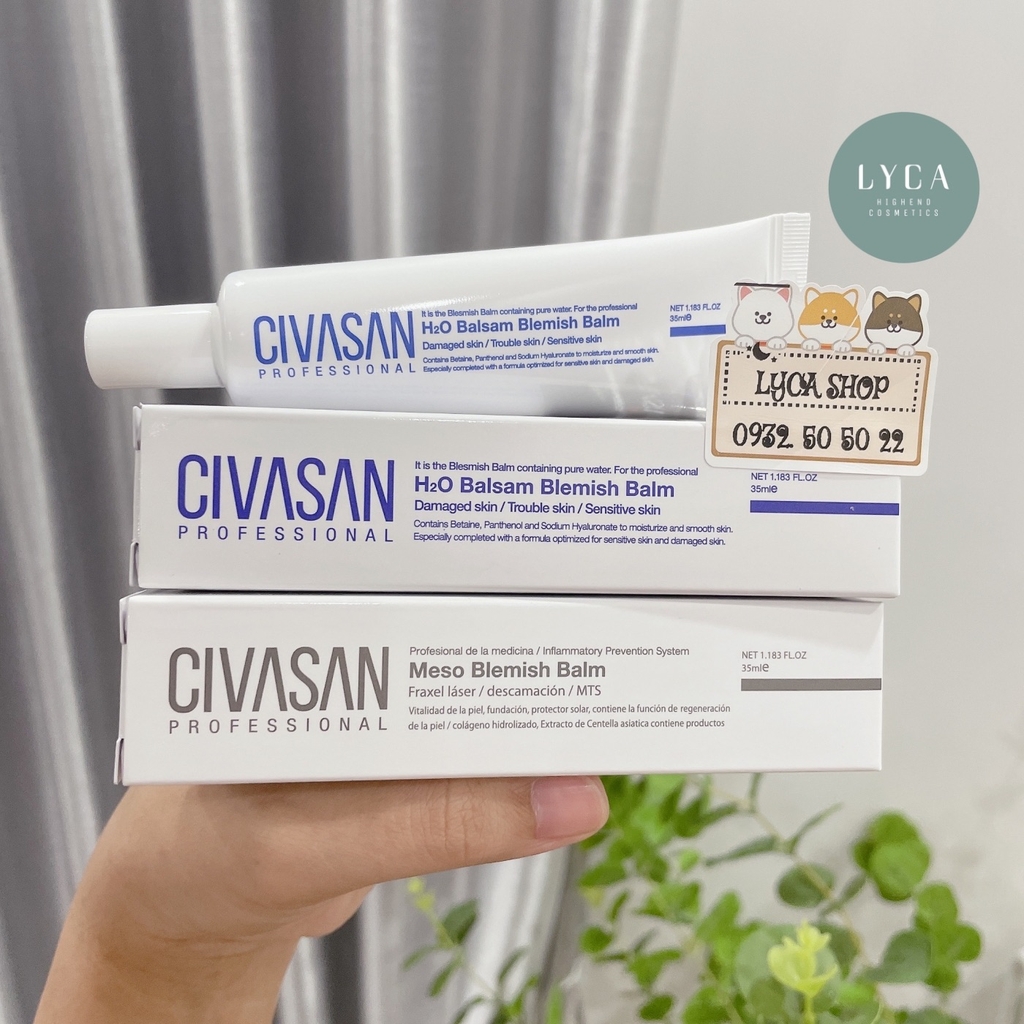 Là dạng kem vừa có tác dụng dưỡng da vừa có màu nền như một lớp trang điểm chuyên nghiệp. Công thức chống nắng bảo vệ da và ngăn chặn tia tử ngoại và bụi bẩn có hại cho da. Bảo vệ và điều trị tổn thương cho da sau phẩu thuật bắn laser, da mỏng yếu. Ngoài ra, Civasan H2O Balsam Blemish Balm còn cung cấp dưỡng chất cho da, tăng cường độ ẩm, xóa mờ sẹo, phục hồi da tổn thương sau lăn kim hoặc laser.