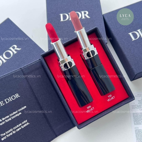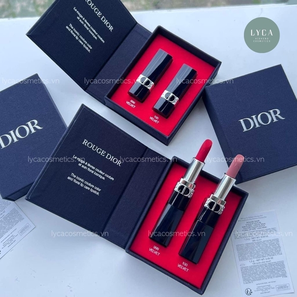 Set son Dior Rouge Mini với thiết kế nhỏ gọn, sang chảnh gồm 2 màu 999 Velvet và 100 Nude Look Matte siêu hot của hãng cho đôi môi thêm phần xinh đẹp hoàn hảo.