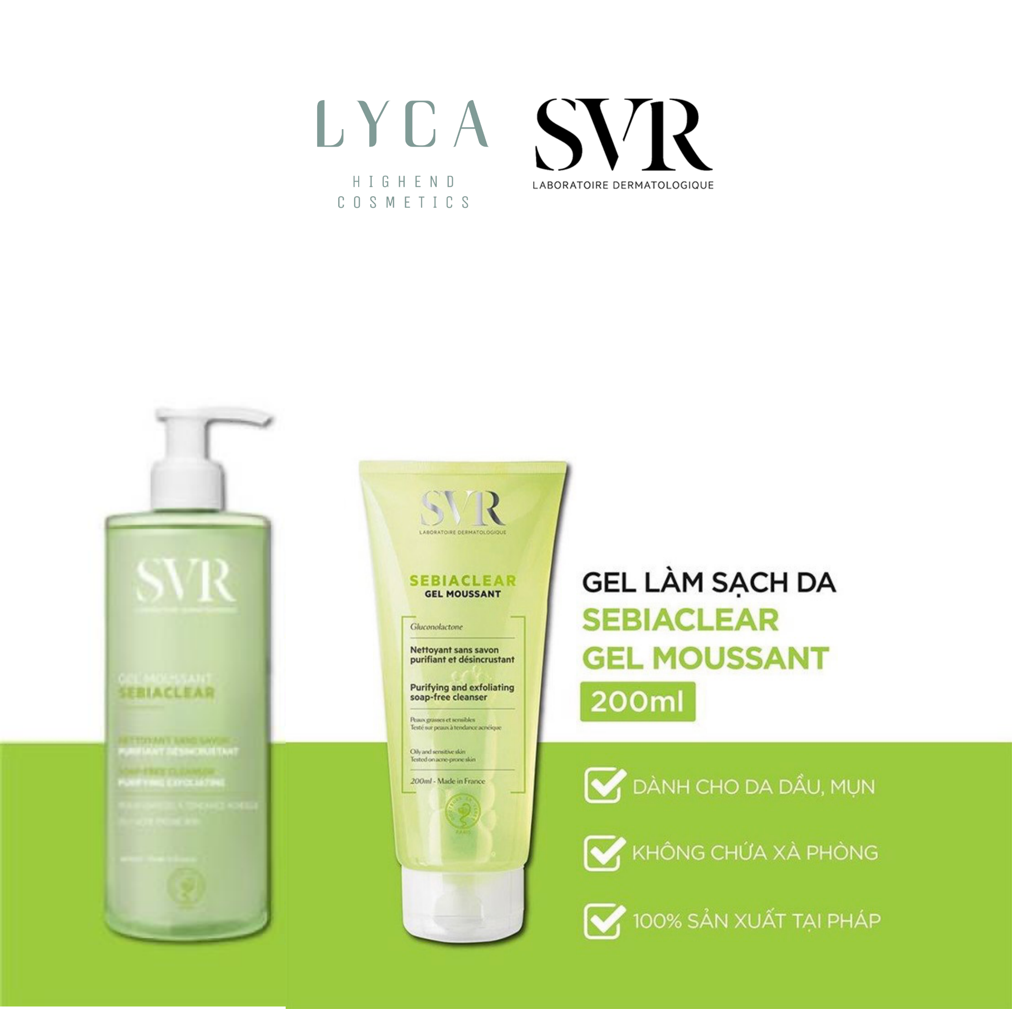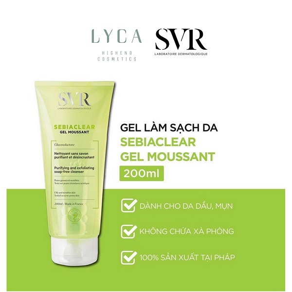 Gel Rửa Mặt không chứa xà phòng SVR Sebiaclear Gel Moussant là sản phẩm sữa rửa mặt dành cho làn da dầu mụn đến từ thương hiệu dược mỹ phẩm SVR..
